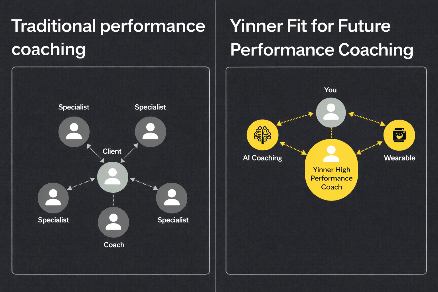 Yinner helps professionals achieve sustainable peak performance by combining AI based elite coaching and high- end biometric insights and personalized guidance.
